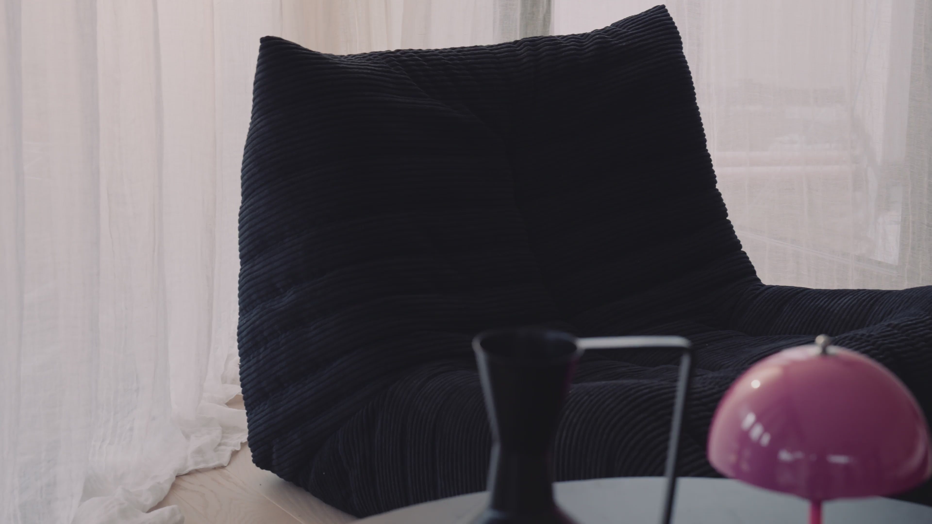 Der Sessel „Calmo“ verkörpert entspanntes Sitzen in seiner stilvollsten Form. Mit seiner markanten, bodennahen Silhouette und der weich gepolsterten, gefältelten Oberfläche bringt er den Look moderner Lounge-Möbel in dein Zuhause. Die großzügig gepolsterte Sitzfläche passt sich dem Körper an und lädt zum Zurücklehnen, Lesen oder einfach zum Abschalten ein. Durch die fließende Form entsteht ein einladendes Sitzgefühl, das ohne sichtbare Beine oder harte Kanten auskommt.